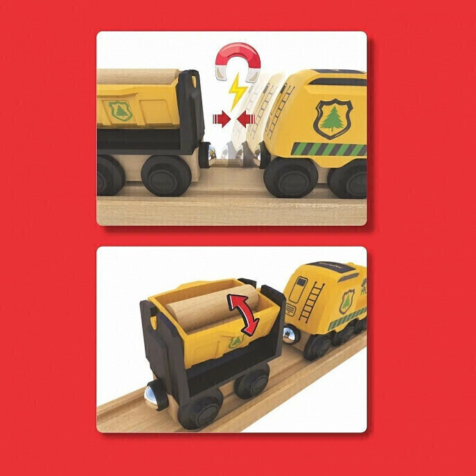 Con la ayuda de la grúa magnética y el vagón de carga, Benny recolecta plantas y árboles para renovar los paisajes de su parcela sustentable, fomentando valores ecológicos y responsabilidad ambiental desde temprana edad.