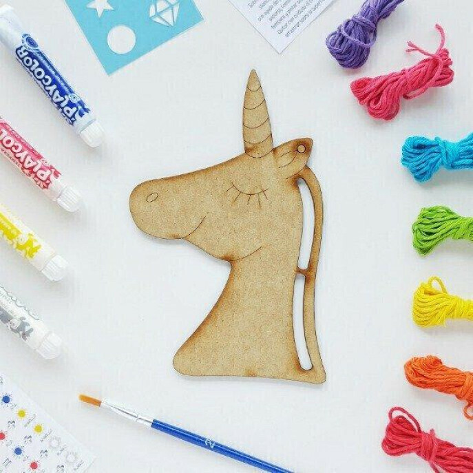Contenido del kit: - 1 figura en MDF de aproximadamente 16 cm - 1 stencil con dibujos alusivos a la figura - 4 témperas de colores no tóxicas - Hilos de algodón en distintos colores - Instrucciones claras para armar las cabelleras, crear nuevos colores y utilizar el stencil - Packaging práctico: estuche de cristal con cierre tipo ziploc de 15x23 cm