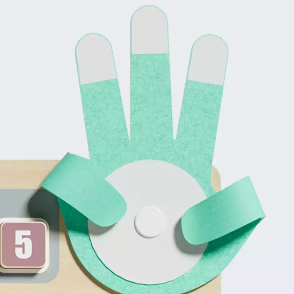 - Palmas de fieltro suave que simulan el conteo con los dedos, ayudando a los niños a comprender y visualizar los números de manera natural y lúdica.