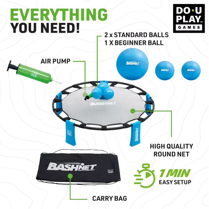 ¡Formá equipo y disfrutá de un juego lleno de acción y movimiento! Bash Net es el entretenimiento perfecto para reuniones familiares, días de campo o partidos con amigos.